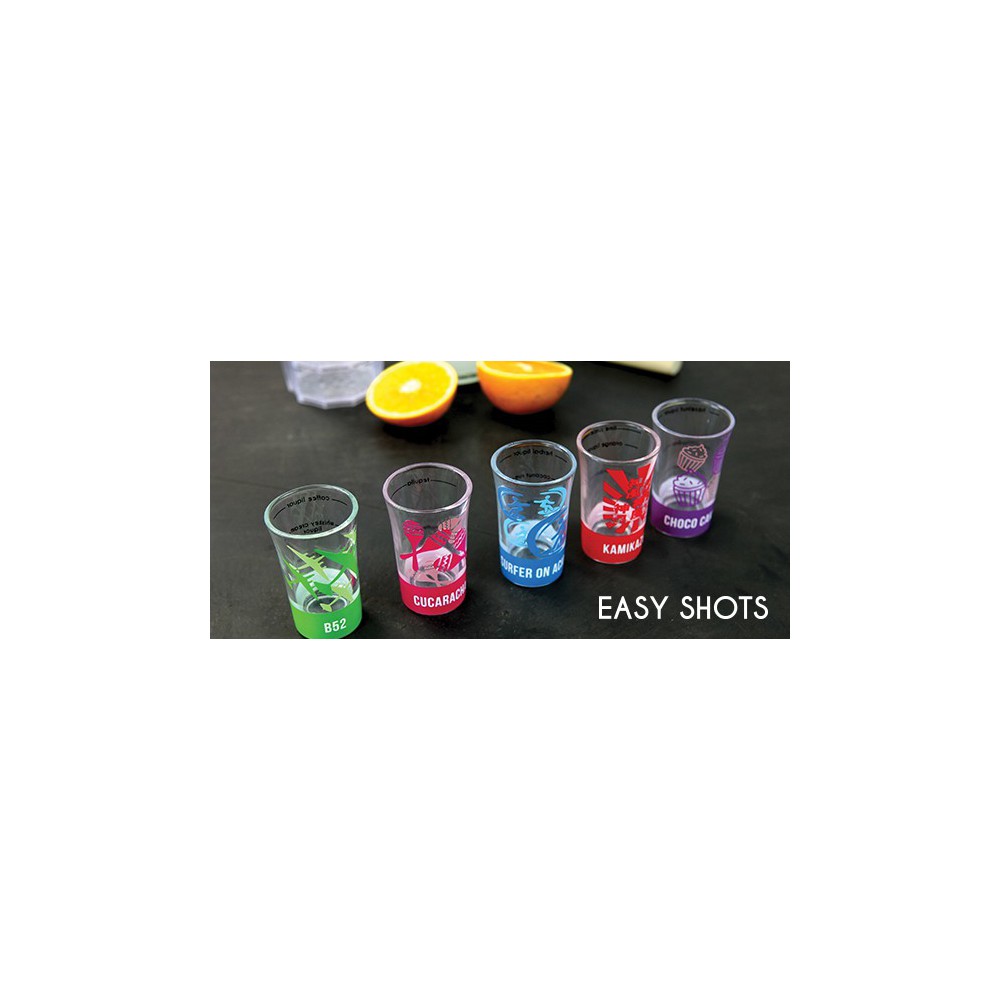 Pour préparer votre cocktail, versez les ingrédients jusqu'aux marques indiquées. Recette imprimée sur les shooters.